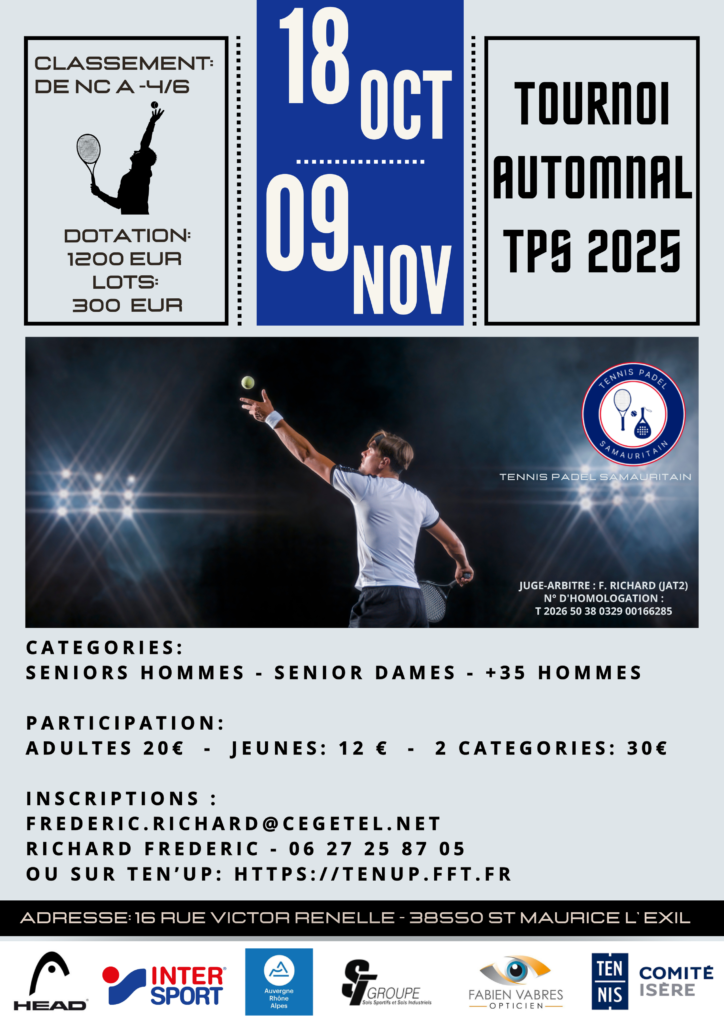 St Maurice l’Exil le 12 novembre 2023 — Le rideau est tombé sur le Tournoi Open Indoor du TCS, laissant derrière lui trois semaines de compétition bien menée qui a rassemblé 176participants. L’événement s’est déroulé dans une ambiance de camaraderie et de fair-play, offrant des finales intéressantes et des moments marquants.